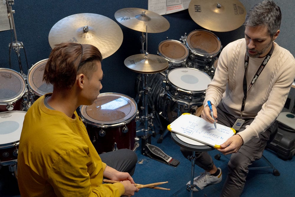 You’ll learn from world-renowned drum instructors and have the opportunity to perform on stage regularly. Our program also covers electronic drumming, digital recording, loops, and sequencing, so you’ll be up-to-date on the latest trends and technologies.