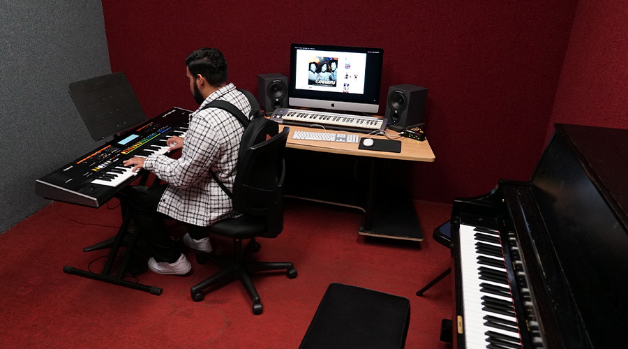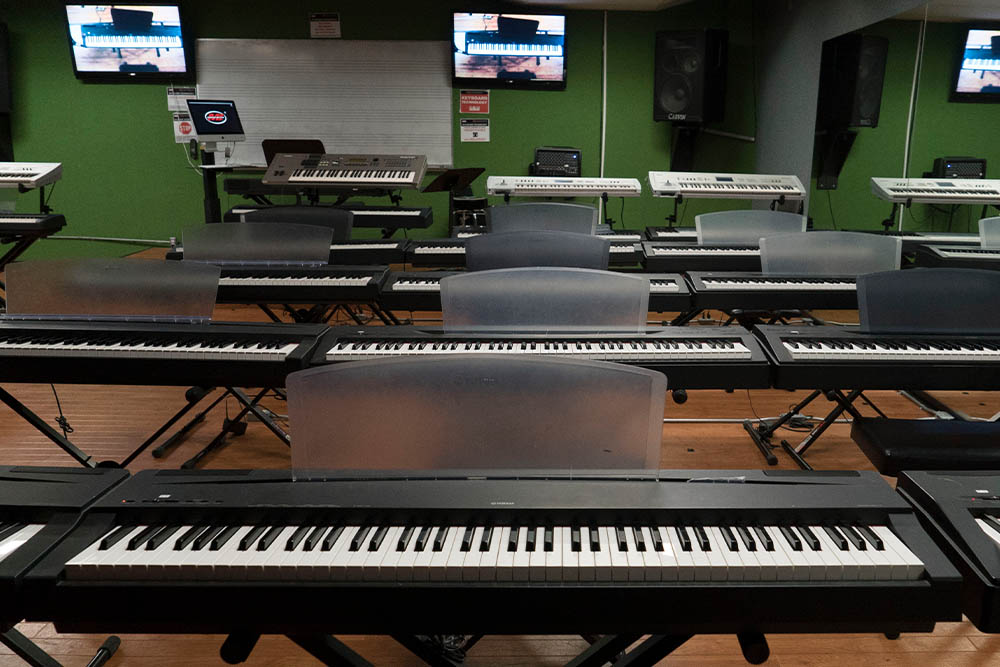Our Keyboard Program also provides professional training in advanced capabilities such as sampling, drum programming, production, digital recording, and arranging, all while offering certified Apple Logic training.